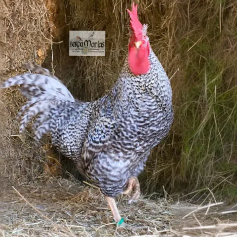 Se trata de una gallina campera, rústica y muy vivaz, de tipo mediterráneo. Se reconocen seis variedades de color, aunque nosotros hemos apostado por la variedad barrada o franciscana.